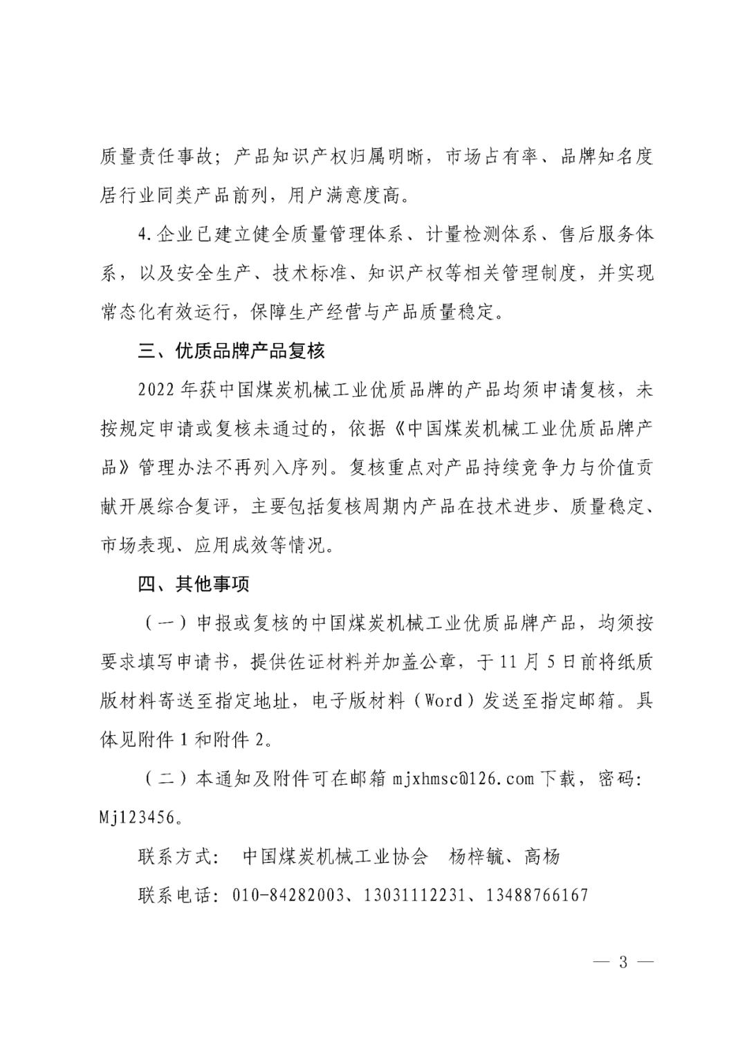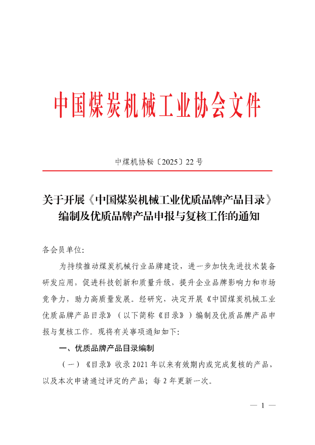 关于开展《中国煤炭机械工业优质品牌产品目录》编制及优质品牌产品申报与复核工作的通知