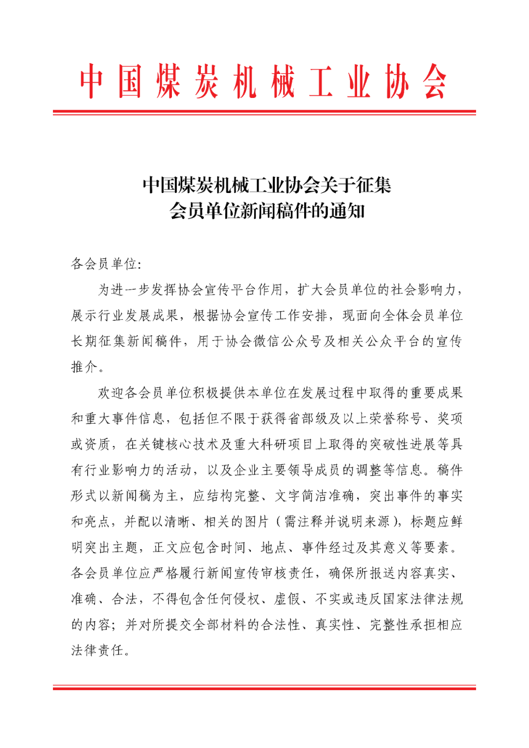 中国煤炭机械工业协会关于征集会员单位新闻稿件的通知